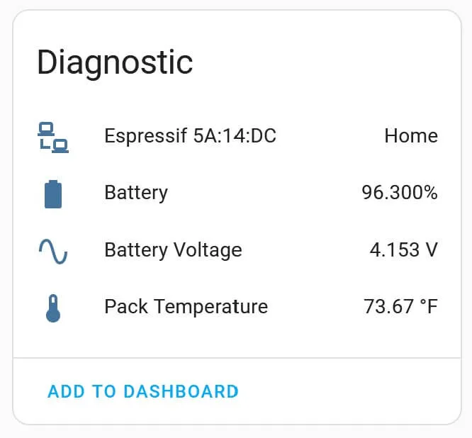 Special thanks to the authors and contributors for the MAX17043 and BME680 sensor components that I used extensively to learn how to create this component. Also, thanks to the authors of the Adafruit LC709203F Arduino library for example code showing how the communication and CRC calculations are done.